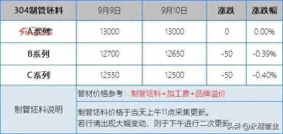 不銹鋼給水管制管坯料價(jià)差維持50元/噸;廢料成交傾向高位
