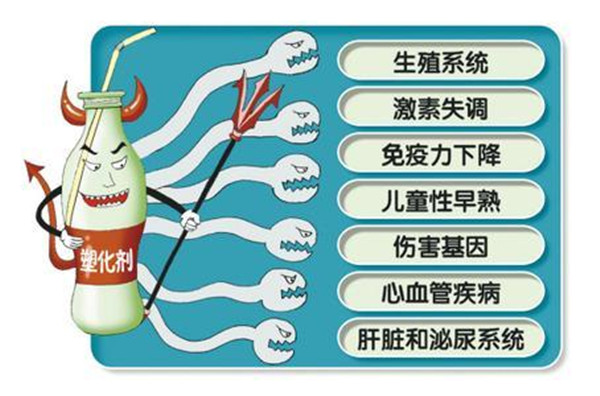 聯(lián)苯酚A(Bisphenol):有雌性荷爾蒙化學(xué)物質(zhì)反應(yīng),乳腺癌細胞呈異常增殖;鄰苯二甲酸酯(DEHP,BBP,DBP):對精巢具有毒性;肝臟癌細胞呈異常增殖;聚乙烯(Polystyrene):引起婦女體內(nèi)荷爾蒙增加;聚氯聯(lián)苯(PCB):環(huán)境荷爾蒙的主要成員,燃燒以后產(chǎn)生二惡英。
